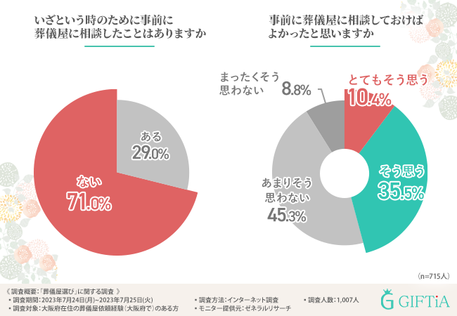 ギフト、ノベルティ事業を手掛ける株式会社ギフティア(https://giftia.co.jp/)は、大阪府在住の葬儀屋依頼経験のある方を対象に、「葬儀屋選び」に関する調査を実施しました。