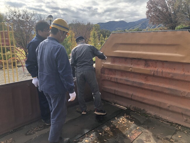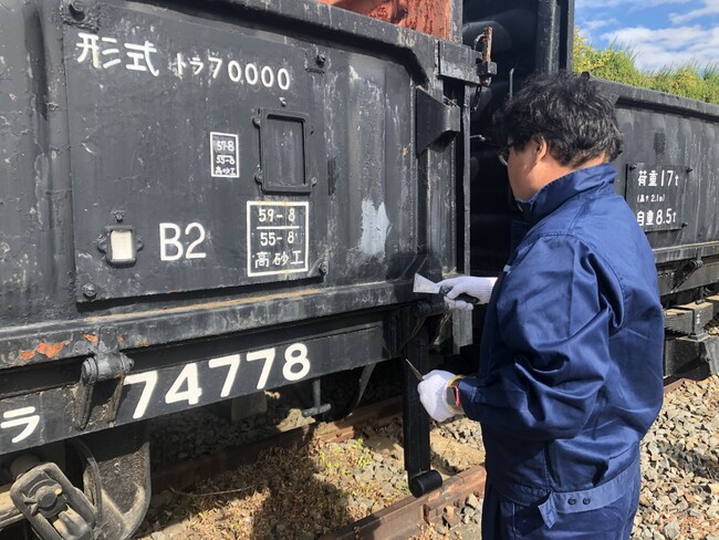 先頭車両EF15の再塗装プロジェクトを目前に、11月11日には秋空の下、連結する貨車の一部を修繕する作業が有志の方々によって行われました。修繕作業に携わった方々からも、今回のプロジェクトの成功を願うコメントをいただいております。