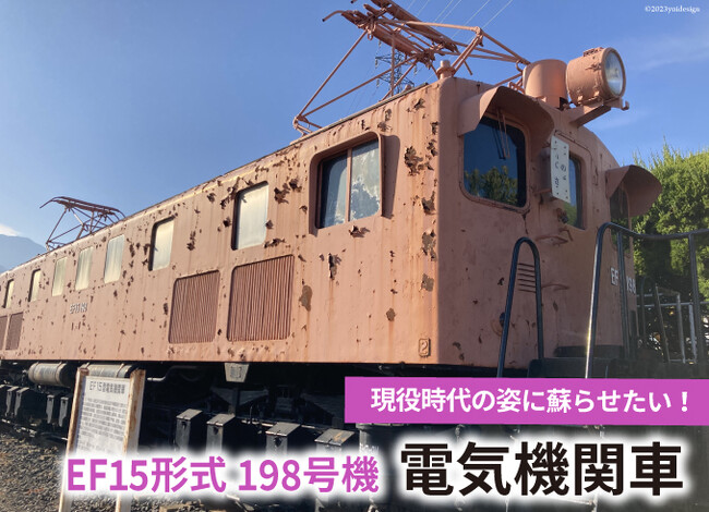 韮崎市は経年劣化で表面塗装剥離が進む「電気機関車EF15」の再塗装のためのクラウドファンディングを開始しました。ふるさと納税制度を活用しており、記念プレートや記念ラベルウイスキーなどの再塗装を記念した特別な返礼品をお選びいただけます。「電気機関車EF15」は全国で見ても珍しい当時の姿で保存されており、長年地元に愛されてきました。本プロジェクトでは再塗装した電気機関車をもとに、観光振興や郷土愛が生まれることを目指します。