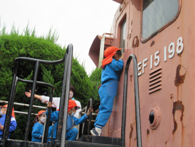 観覧用のステップが常設されていることから、容易に車両に乗ることができ、地域の子どもたちに愛されているとともに、韮崎市の人気フォトスポットのひとつになっています。しかしながら、長い年月の経過とともに、車体の塗装の剥離が進んできています。