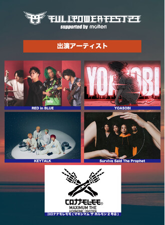 RED in BLUE・YOASOBIほか全5アーティストが出演!「FULL POWER FEST’23 supported by molten」 タイムテーブル発表&チケット一般販売開始!!