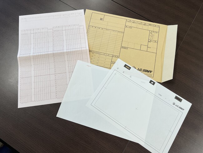 特に「カット袋」「タイムシート」などは、J.C.STAFFが実際にアニメ制作に使用している「本物」です。オリジナルクリアファイルと合わせて、是非この機会にご入手ください。