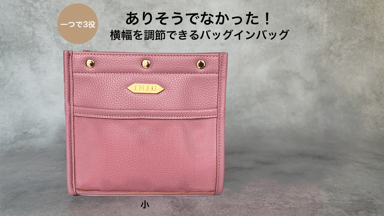 主役級のバッグは多くの企業が新作として発売される中、便利グッズとして定着したバッグインバッグの現状は、平均化されたサイズの流通に留まっております。多様化する時代にこそ一人ひとりの生活スタイルに寄り添うことができる進化したバッグインバッグの必要性を感じ、ミニバッグからA4トートバッグに対応できる横幅可変式バッグインバッグを開発いたしました。バッグの中をキレイに整えオシャレにすることでモノを探す時間から解放され、歓びに満たされる時間が増えます。収納のお悩み解決をより充実させ、便利グッズだけでは終わらないデザイン性を取り入れることでお気に入りバッグの魅力を高める新しいバッグインバッグ。片付け上手を叶えながらバッグの中の劇的な変化をお楽しみいただけます。