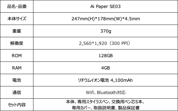 Ai Paperは 370g / 厚さ4.5mm 、Ai Paper Miniは230g / 厚さ5.1mmと業界トップレベルの薄型・軽量。ストレージは 128GB で、大量のノートや書籍を保存できます。