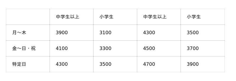 ※障がい者割引がございます。身体障害者手帳、療育手帳、精神障害者保健福祉手帳、ミライロID等をお持ちの方ご本人及び介護者1名までが対象となります。