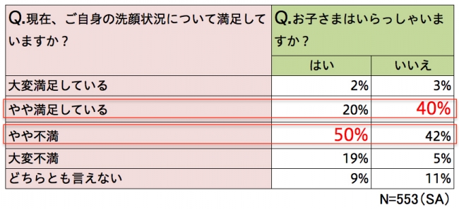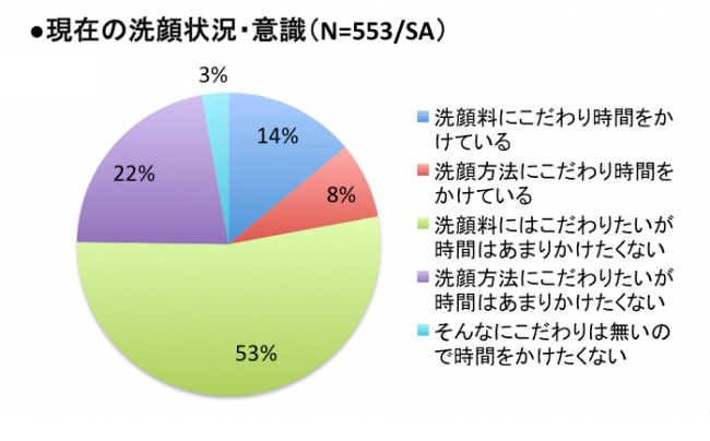 満足度について違いが出た子どもの有無ですが、理想の洗顔スタイルへの想いは同じ結果がでました。女性なら誰しも『時間をかけずにこだわりたい』と思っているようですね。
