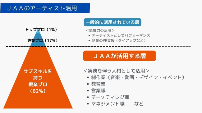 私たちはこの層のアーティストの強化・活用を通じて、社会課題である人手不足解消の実現を目指しています。