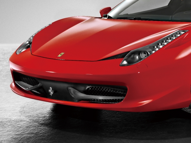 1. カーボンファイバー フロント・スポイラー: フロント・セクションを軽量化するとともに、フェラーリ458イタリアのスポーティな外観をより強調