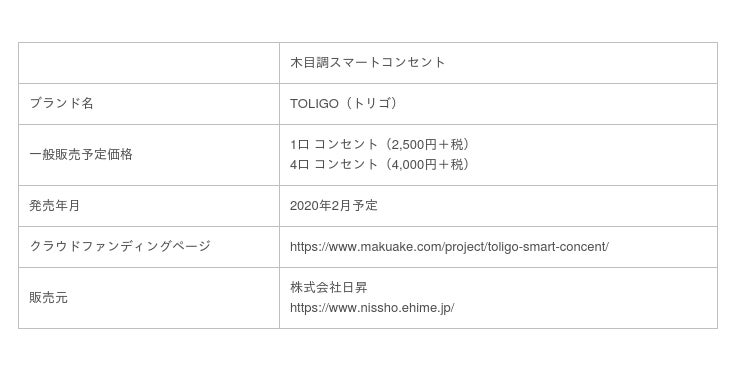 インテリア照明・家具のネットショップ事業を展開する株式会社日昇(本社:愛媛県伊予市米湊323-1)は、2020年2月末にインテリアのIoT商材を発売します。発売に先行して、クラウドファンディングサイト「MAKUAKE(マクアケ)」にて2つのプロジェクトを実施。今後は自社ECサイトでの販売の他、家電量販店・雑貨店・インテリア用品店などの販路を開拓予定です。2月上旬には東京インターナショナルギフトショーに出展します。初回生産分はシリーズ合計17,000台。年内販売金額1億5000万円を目指します。