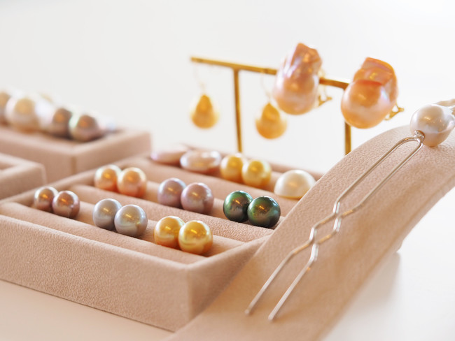 今回のイベントでは、デザイナー自身が長年かけて収集したパールを使用した限定アイテムも見どころの一つ。バリエーション豊かな色味やサイズで展開されるパールジュエリーは一点物または数量限定になるため、無くなり次第終了となる。
