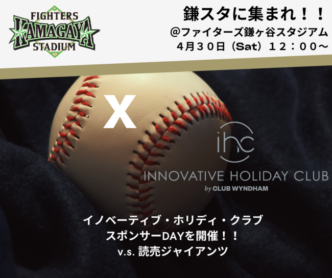 新コンセプトで休日の過ごし方にイノベーションを起こす「イノベーティブ・ホリデー・クラブ・バイ・クラブウィンダム(IHC)」は2022年4月30日、日本のプロ野球球団のファイターズ鎌ケ谷スタジアム(千葉県)にて北海道日本ハムファイターズVS読売ジャイアンツ戦をスポンサーし、日本国内の旅行者に向けて特別なホリデースタイルをご提案いたします。