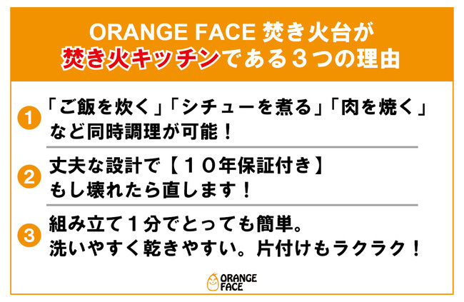 アウトドアでの本格料理を可能に!焚き火キッチン「ORANGE FACE」クラウドファンディングMakuakeにて注文受付開始