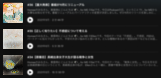 各エピソードのカバーアートは、高校生・大学生のアーティストに、「送り手」さんをイメージして描いていただいた絵を採用しています。感性でエピソードを選ぶことで、偶発的で多様な人生との出会いを生みます。