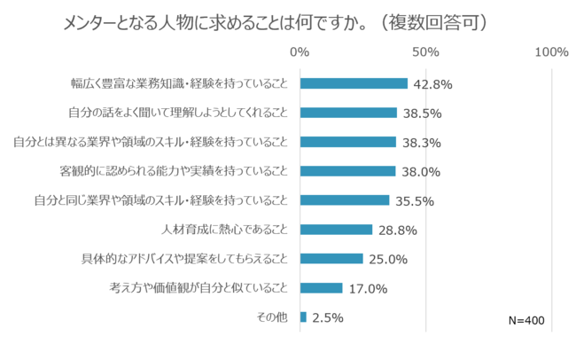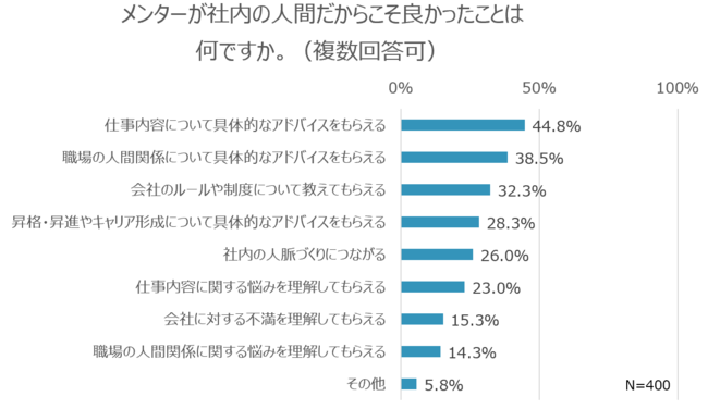 調査対象:社内メンター制度の利用経験があり日本国内に居住する20代〜50代の男女400名