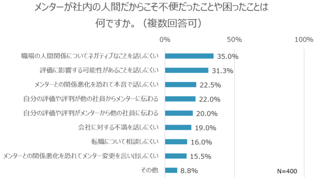 自身のメンターが社内の人間である場合、3人に一人が人間関係や評価に影響しうる相談を躊躇