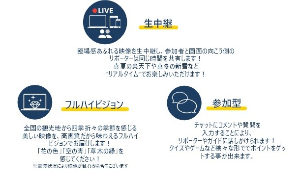 ・一方でサービス提供にあたっては画像及び音声の質の担保が課題であったことに加え、高齢者の方のスマートフォンやタブレット等の機器操作にも課題がございました。そのような課題を補うべく、視聴者参加型動画配信サービス「旅介ちゃんねる」を運営する東京トラベルパートナーズ株式会社(代表取締役 栗原 茂行(くりはら しげゆき))と連携することを決定いたしました。