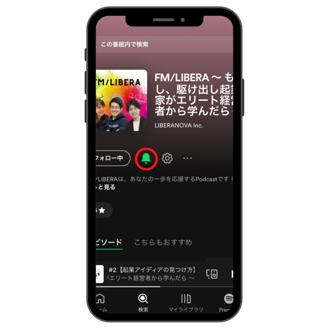 「フォロー」をタップして登録しておくと、「My Library」からいつでも簡単にアクセスができるようになります。また、ベルマークをタップしておくとエピソードの新着通知が届きます。
