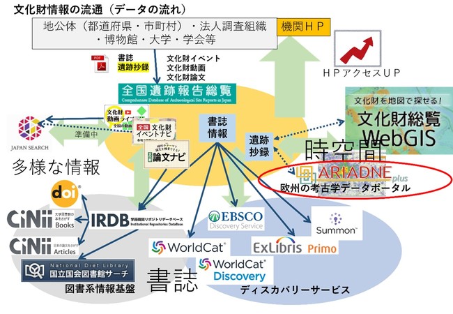 2022年2月22日、日本全国の発掘情報を収集および整理している奈良文化財研究所がヨーロッパを中心にした27か国で推進しているARIADNE plus(考古学情報基盤)に遺跡情報13万件のデータ連携を開始しました。世界の考古学情報の共通基盤に参画することで、日本の遺跡情報へのアクセスが容易になり、日本の遺跡情報を世界と共有することが可能になります。