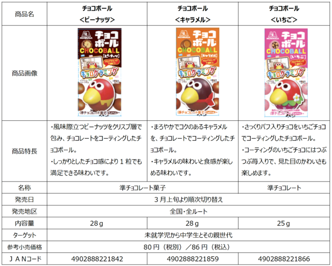 ※「チョコボール」は1967 年発売。ピーナッツやキャラメルをセンターにチョコ掛けしたお菓子です。「チョコボール」は森永製菓の登録商標です。