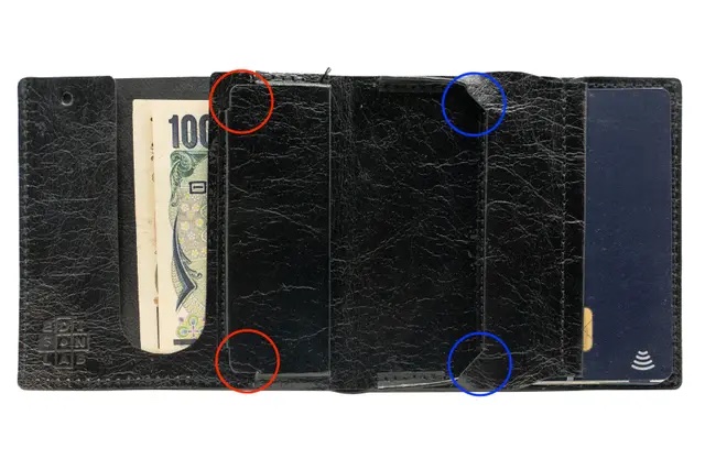 最近、カードを使う機会の方が多くないですか?だから、財布を開かなくてもカードを一覧できて、すぐに出し入れできるよう、外向きにカードを配置しました。