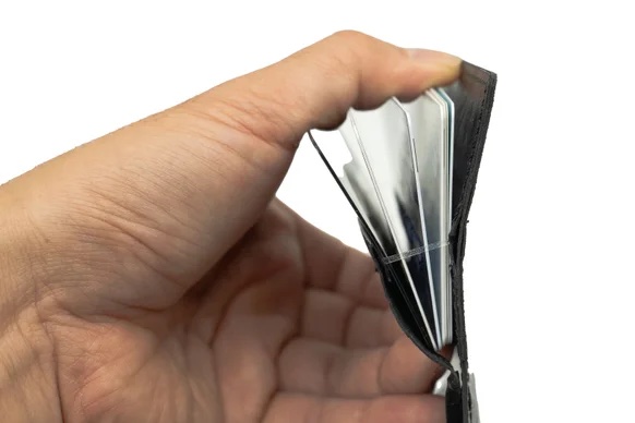 カードやコインを入れても、ウルトラ薄い!特許出願の発明+究極のドイツ製レザーペーパー