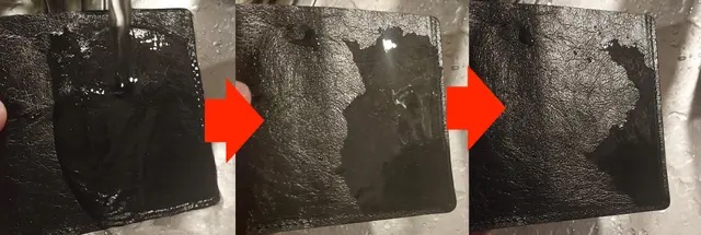 革にしか見えなくて、水をかけてもすぐ弾いてしまう防水。