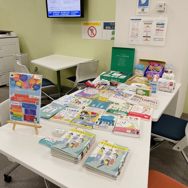 NPO法人HIKIDASHIでは、若者が気軽に性について学び相談できる場所として、2022年8月から「ユースカフェ」を出張型で開催しています。看護師・保健師・思春期保健相談士である代表の大石真那が相談に応じ、必要な性の知識が掲載されている「#つながるBOOK」※1を配布しているほか、若者向けの書籍やコンドーム、生理用品等を多数揃え、若者に必要な知識を普及啓発しながら、気軽に相談に応じられる場所を目指しています。また、近隣の医療機関とも少しずつ連携を始めており、今後は必要に応じて受診に繋げられるような体制を強化していく予定です。