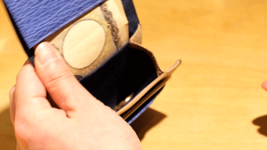 行き着いた答えは、縦型構造の2つ折りミニ財布でした。