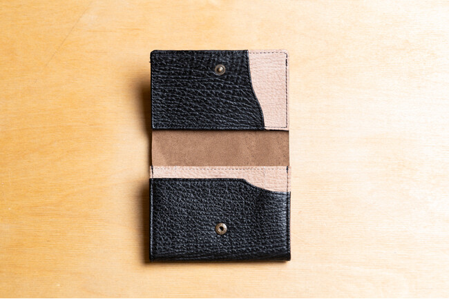 【被災地へ想い届け】気仙沼産サメ革が主素材の丈夫で美しい財布。カード・硬貨はもちろん、折らずに紙幣・名刺まで入る使い勝手抜群な「サメ革2つ折り縦型ミニ財布」が新登場!