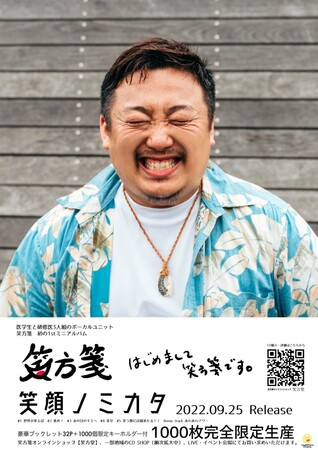 医学生と研修医の3人組ボーカルユニット『笑方箋(しょうほうせん)』初のCD『笑顔ノミカタ』が、2022年9月25日(日)より発売開始となります。日本全国に歌で“笑顔”と“健康”を届けるため“1000人”へのCD手渡し企画を実施いたします。