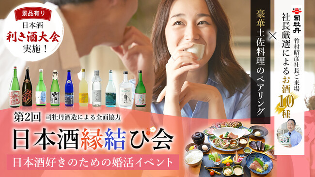 明神縁結び会(神田明神公認 / 2017年より全19回開催)、警察縁結び会(東京都警察官友の会公認 / 2019年より全5回開催)などを企画・運営し、“真剣な婚活イベント”で実績を多く持つ「結婚相談所ブライダルパートナーズ」(代表 / 中島 賢太郎)が、この度、高知県で420年以上の歴史を誇る「司牡丹酒造株式会社」による全面協力の元、日本酒好きで真面目な出会いを求める独身者を結ぶ婚活イベントを開催します。