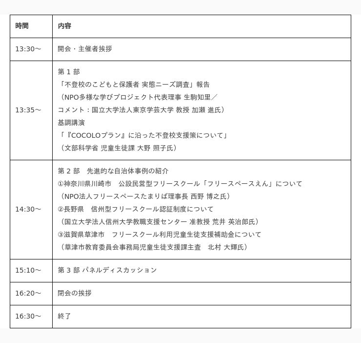 名称:シンポジウム 〜不登校当事者の実態とニーズを把握し、官民共創でつくる効果的な施策とは〜