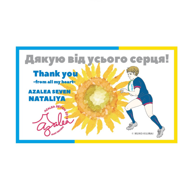 「Lately I found out that I was invited to join the women's national team of Ukraine in rugby-7. I am very happy that I received an invitation and I am proudly ready to represent my country at international competitions. Without the support of Azalea and the Himawari Members, none of this would have happened, because you help me improve and give me the opportunity to play rugby and do what I love. I would be happy if you would continue to support me, so I am asking for your support and I will infinitely grateful for this!Together with you to victory!」