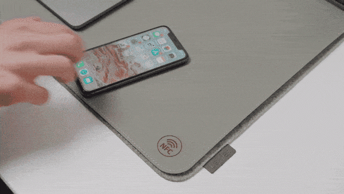 PUレザーマットには、NFCホットスポットが組み込まれています。スマホをピッとタッチすれば、セットされたアプリが自動で開き、ルーティーンにしているスマホアプリ起動可能です。(音楽を聴く、お部屋の電源をON、OFF、アラームを鳴らすなど)