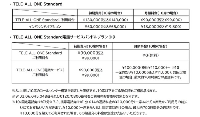 また、TELE-ALL-ONE Standardをご購入の際、ファイン・インテリジェンス・グループが提供するクラウドPBXサービス「TELE-ALL-LINE」とセットでご購入いただくとTELE-ALL-ONE Standardの利用料が実質無料となるバンドルプランも提供を開始致します。