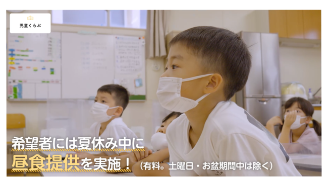 3. すべての小学校に児童を保育する「児童くらぶ」があり、全学年対象に保育時間は午後5時〜午後7時までの延長も可能。2023年度から夏休み期間中には希望者に昼食提供を行い(有料。土曜日、お盆期間除く)働く保護者をサポート!