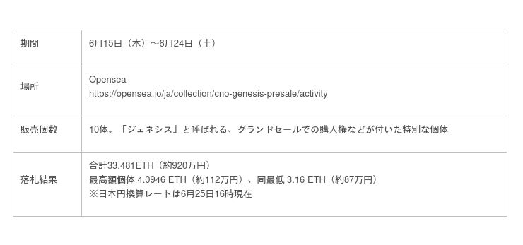 <コメント> ジェネシス先行セールオークションに参加してくださったみなさまに感謝します! 日本初の大規模コレクションとなる CryptoNinja Ordinals が、新しいクリエイターの活躍の場を作るきっかけとなることを期待しています。盛り上げていきましょう!