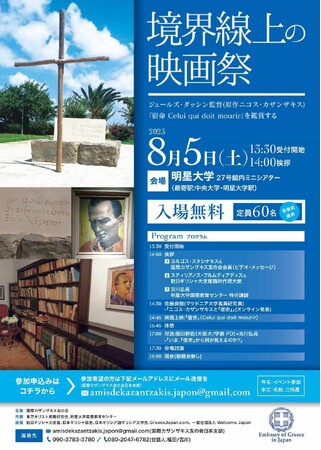 一般社団法人Welcome Japanでは、「境界線上の映画祭:ジュールズ・ダッシン監督(原作ニコス・カザンザキス)『宿命Celui qui doit mourir』を鑑賞する」(主催:国際カザンザキス友の会、共催:東方キリスト教圏研究会、明星大学国際教育センター)に後援する運びとなりましたので、お知らせします。
