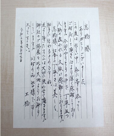 高橋様、仕事の丁寧さは、美しく、相手に伝わるものですね。