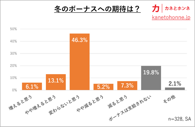 カネとホンネ調査研究所は、都市部(※)に居住する20〜59歳の男女328名を対象に、2023年冬のボーナスについてのアンケート調査を実施しました。