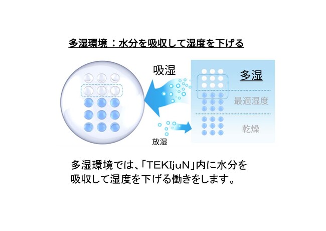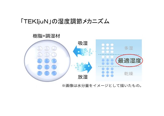 「TEKIjuN」はシャープ株式会社独自の調湿材を樹脂に含侵させた新素材です。