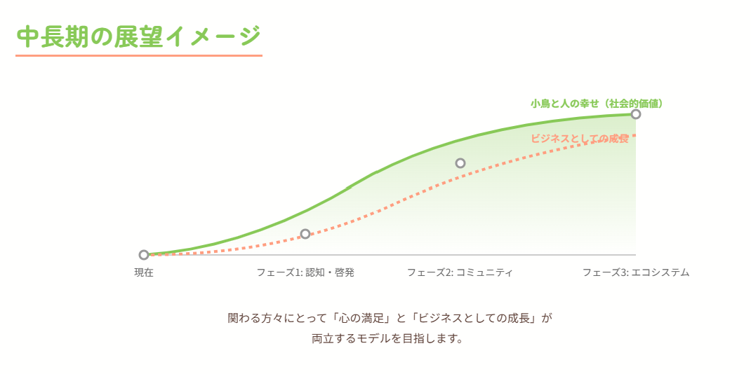 イベントでの出会いは大きな価値を生みますが、来場後の情報収集・相談・予約・購入・支援は分散しがちで、熱量が一過性になりやすい課題があります。とりっぷ&ぴーずが築いてきた鳥コミュニティと、アニマリが提供する「集客・ファン化・予約・EC・支援・記事発信・迷子情報」の基盤を統合することで、単発の施策ではなく、以下を中長期で実装する必要があると判断しました。