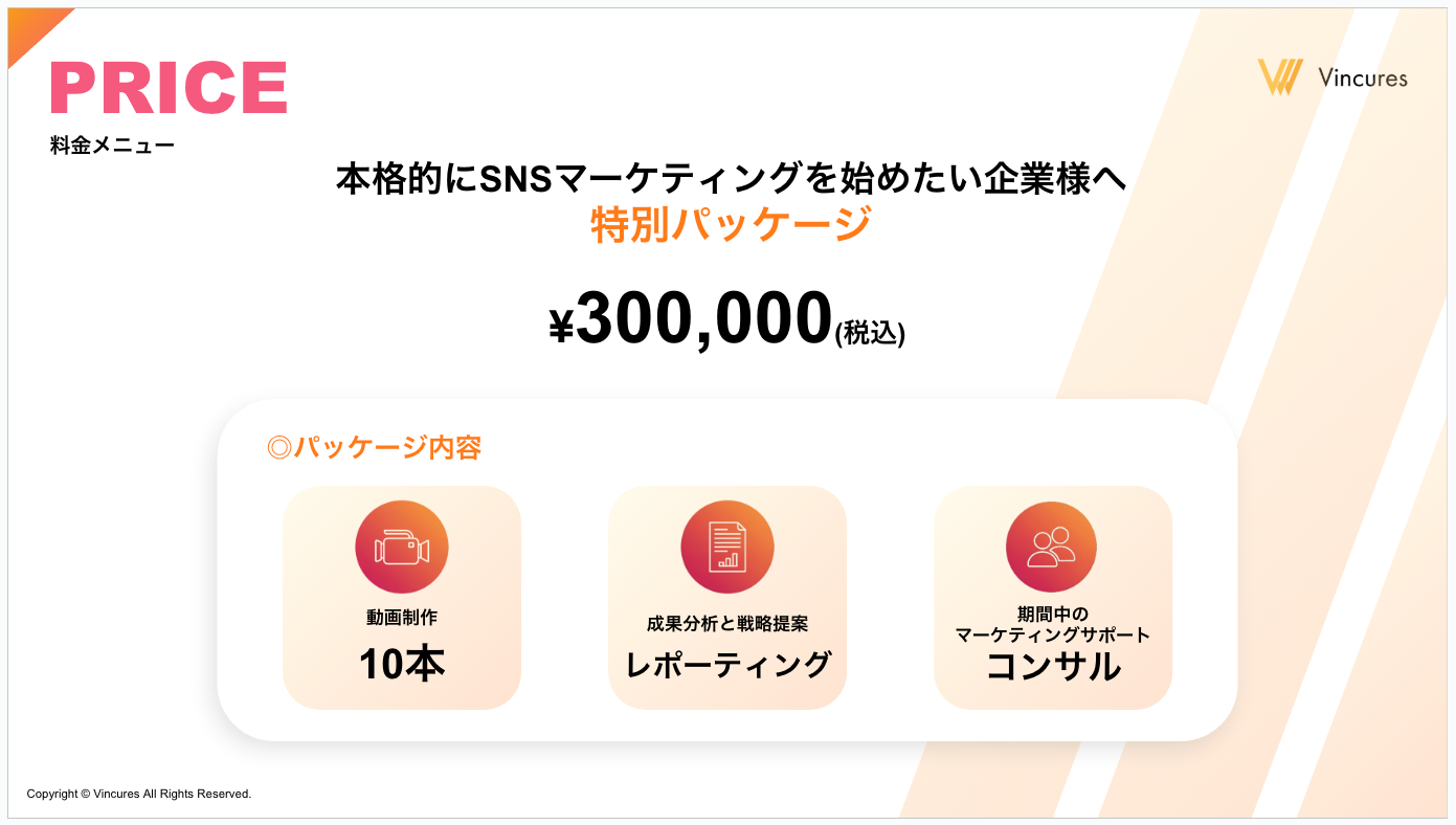 そこでVincuresは、こうした企業の『最初の一歩』の課題を総合的に解決するため、低リスクで高品質な動画制作と戦略的なコンサルティングをパッケージ化した本プランを開発いたしました。