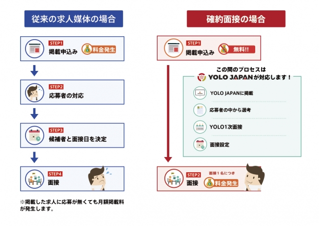 本サービスは求人広告とは異なり、アルバイトの面接によって課金される新しいタイプの求人サービスです。