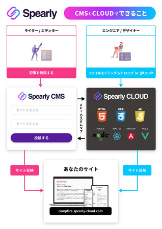 そういったユーザーの皆様の声から、シンプルな静的サイトやJSフレームワークを用いたフロントエンドを手軽に簡単に用意でき、セキュアに高速に配信できるサービスとして、Spearly CLOUDが誕生しました。