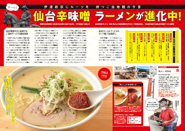 伊達政宗が礎を築いた味噌文化の根付く仙台で生まれ、今や全国区に成長した仙台辛味噌ラーメン。本特集では、元祖である「味よし」の開発秘話からそのルーツを探ると共に、今も進化を続ける個性派辛味噌ラーメンを徹底紹介します。