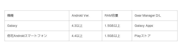 従来のGearシリーズは、Galaxyスマートフォンのみと接続が可能でしたが、今回初めて※2他社AndroidTMスマートフォンとの接続が可能になりました。専用アプリケーション「Gear Manager」をダウンロードし、Bluetooth(R)で接続して利用できます。