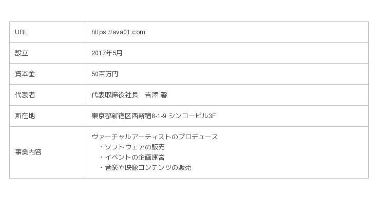 株式会社アカツキ・ヴァーチャルアーティスツ(本社:東京都新宿区、代表取締役社長:吉澤馨)は、