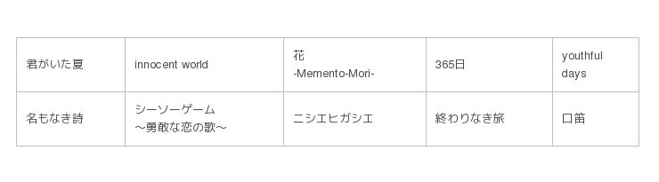 また、音楽配信サービスdヒッツ powered by レコチョク(以下dヒッツ)では、Mr.Childrenのスペシャルプログラムの第二弾が登場。新たに加わった「名もなき詩」「シーソーゲーム〜勇敢な恋の歌〜」などの代表曲を、ぜひお楽しみください。