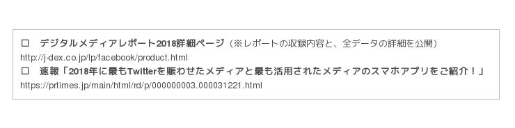 株式会社日本データ取引所(代表取締役 森田 直一)、フラー株式会社(代表取締役 渋谷 修太、櫻井 裕基)は、データセクション株式会社が集計したTwitter投稿データとフラー株式会社が提供したスマホアプリデータを活用した、『デジタルメディアレポート2018』の販売を開始いたします。